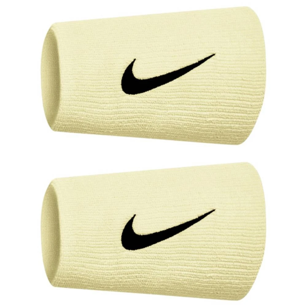 Nike Premier Doublewide Wristbands provide a soft feel with great sweat absorption to keep your hands dry and get the most out of your game when the heat is on. Made of a nylon, rubber and spandex combination, these wristbands are long for extra absorption and feature the iconic Nike swoosh.