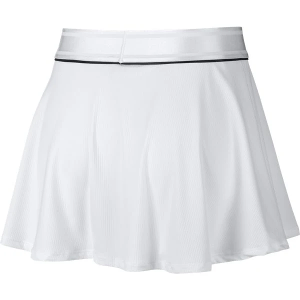 Move across the court comfortably without worrying about any discomfort. Nike Women’s Court Dry Flouncy Skirt has an elastic waist with contrasting detail, a flounce skirt, and a swoosh logo on the bottom left of the skirt.