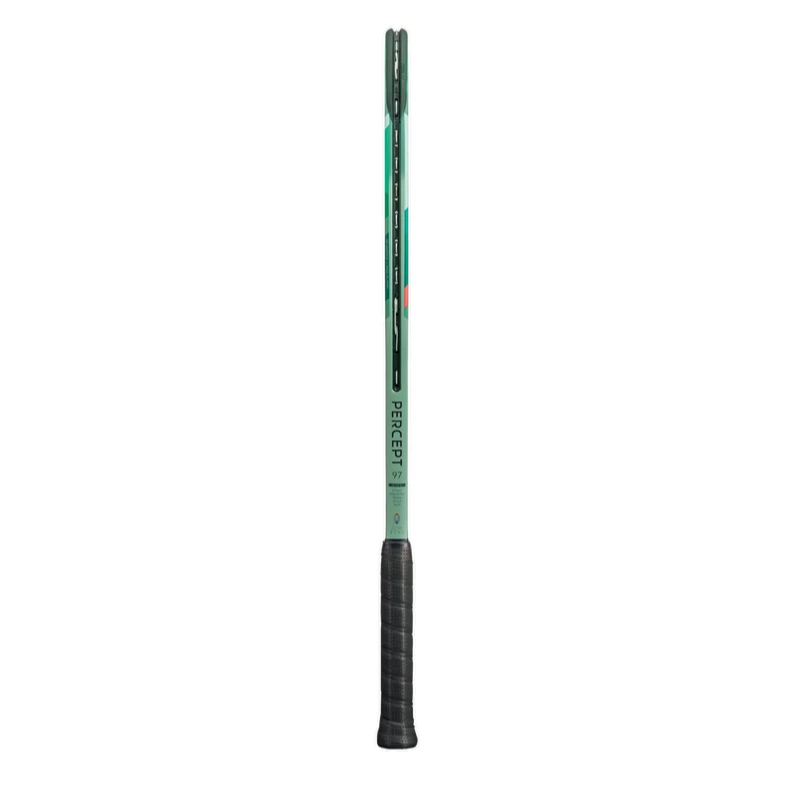Control-oriented with a touch of power, highly competitive and even club-level players will benefit from the Percept 97. At 10.9 ounces, it does require a full swing but has some forgiveness to it. Any half-shot on the run will still get some decent pace on the ball. Aggressive players who hit with tremendous levels of topspin will truly admire the addition to the skills while using this racquet.